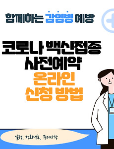 코로나19 예방접종 사전예약 시스템 신청방법 코로나19 예방접종 온라인 예약은 현재 접속 중인 해당 홈페이지에서 진행하실 수 있습니다.